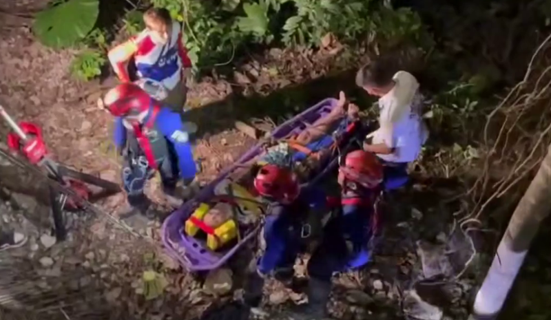 Спасатели оперативно прибыли на место происшествия и с помощью веревок спустились вниз, где оказали пострадавшему первую медицинскую помощь. Очевидно, что ветки несколько смягчили падение 36-летнего туриста, однако, кроме порезов и царапин, у него была сломана бедренная кость на правой ноге и травмы в районе шеи и поясницы. При эвакуации раненого привязали к носилкам, чтобы поднять по отвесной стене. Затем с помощью лебедки и усилий десятка человек россиянина вытащили из зарослей на дорогу.