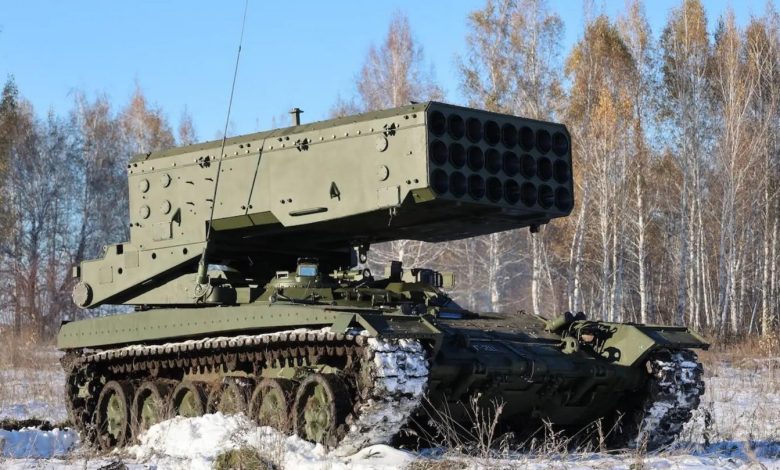 ТОС-1А является одной из самых широко известных российских систем, используемых в ходе спецоперации на Украине. Огнеметная система вооружена термобарическими реактивными снарядами. Полный залп за несколько секунд способен покрыть территорию порядка 40 000 квадратных метров, создавая мощную ударную волну, способную уничтожить бункеры, укрепленные позиции, легкобронированную технику и скопления живой силы. Российские войска применяют систему на коротких и средних дистанциях, с эффективной дальностью поражения от нескольких сотен метров до нескольких километров.